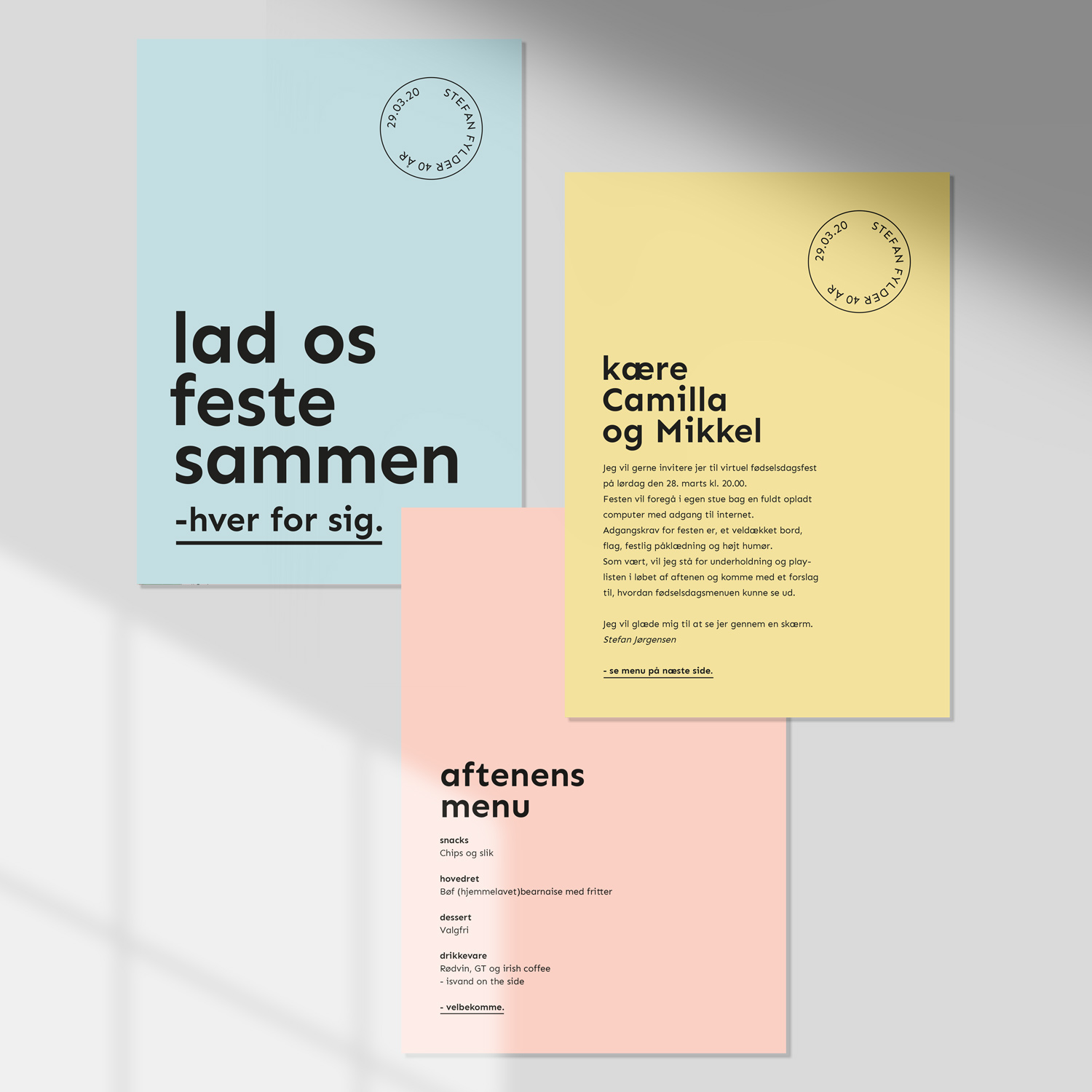 Gør din fest ekstra personlig med costume made grafiske elementer og papirvare.